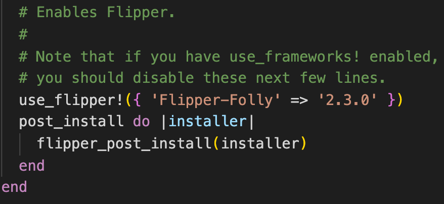 use_flipper!({ 'Flipper' => '0.74.0' }) 로 수정함.