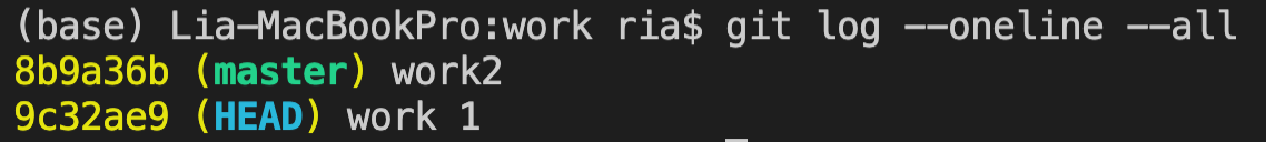 즉, 시간여행이 가능하다는것! 이전 커밋한 내역들을 간단히 보려면 $ git log --oneline 으로 조회한다. (뒤에 --all 옵션을 추가할 시 HEAD 뿐만이 아니라 master의 위치 또한 보인다.)