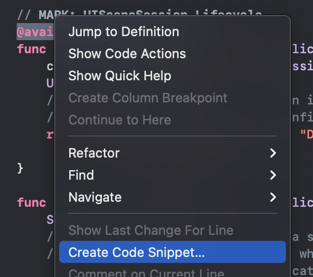 SceneDelegate에서는 파일 전체가 iOS 13.0이상에서 인식되어야하기때문에 위쪽 헤더에 버전 데응 어노테이션을 선언해준다.