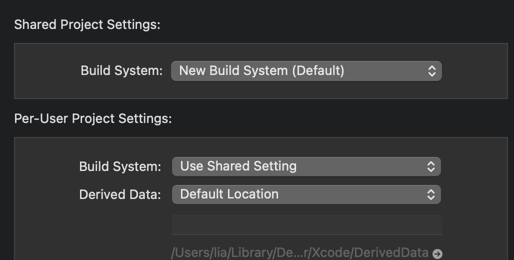 우측 아래 작은 화살표 확인 -> XCode 관련 파일들 중 Derived Data 내 폴더 삭제-> 최대 100기가 정도의 용량까지도 확보가능!! 주기적으로 하면 좋음.