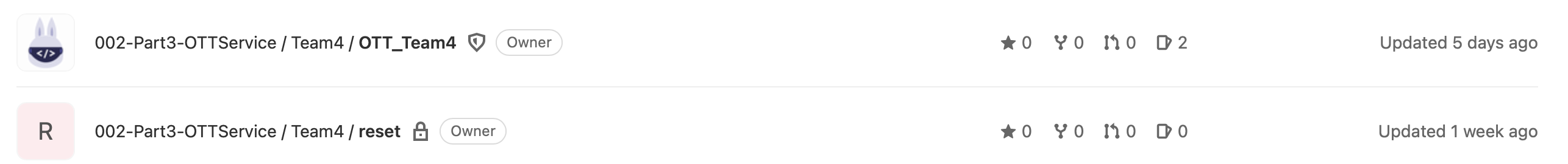 OTT 서비스 4팀을 하였는데, 팀 신청을 늦게 하여 팀원이 세명밖에 없었고 각각 프론트, 백, 데이터를 맡아서 하느라 인당 두 명의 몫을 하게 되었다. 모든 것은 스크럼을 작성하며 깃랩으로 하게 되었다. 엘리스용 깃랩이라 자세히 코드를 보여줄 수는 없지만