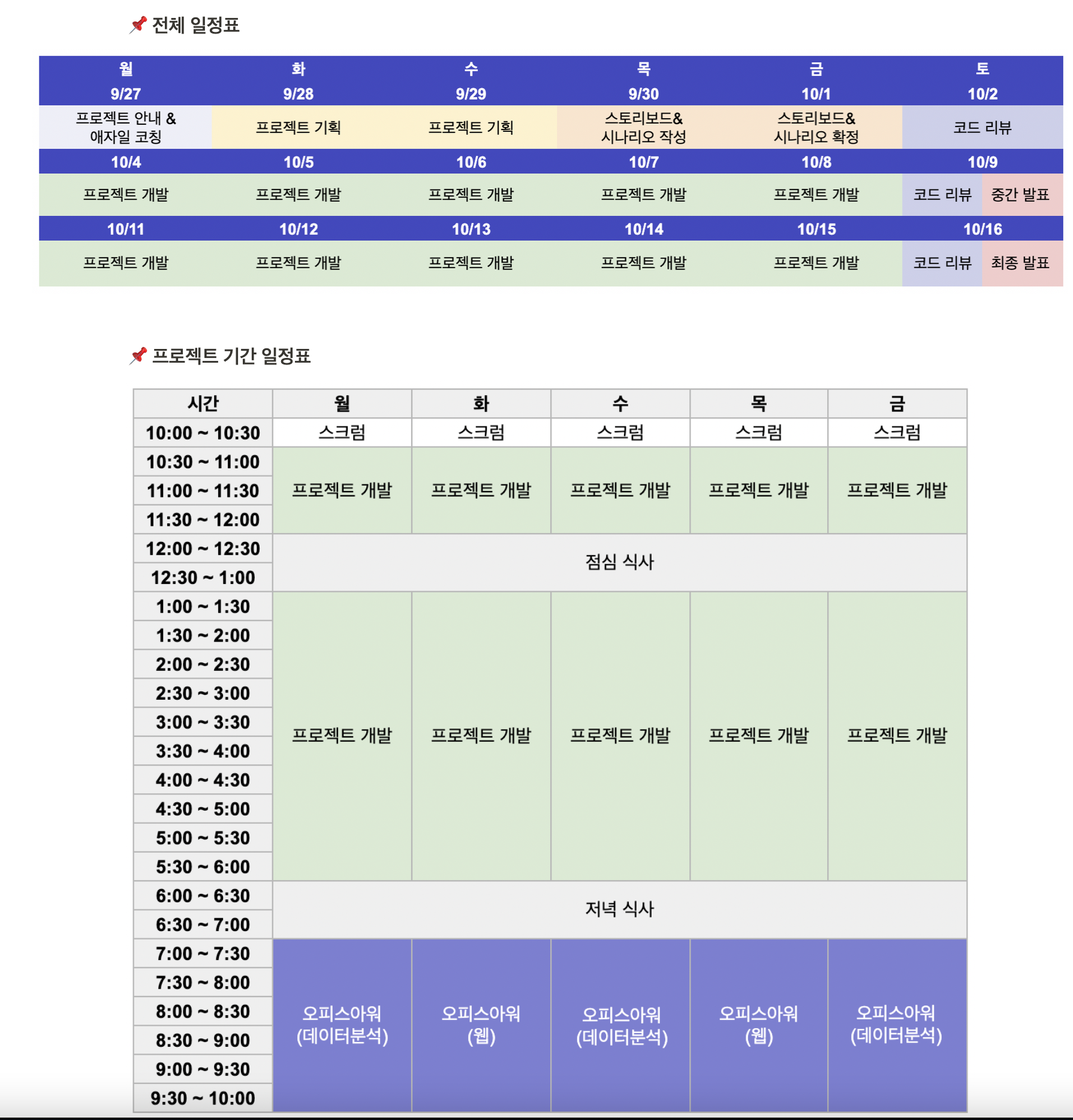 - 프로젝트 기간 : 9/27(월) ~ 10/15(금)