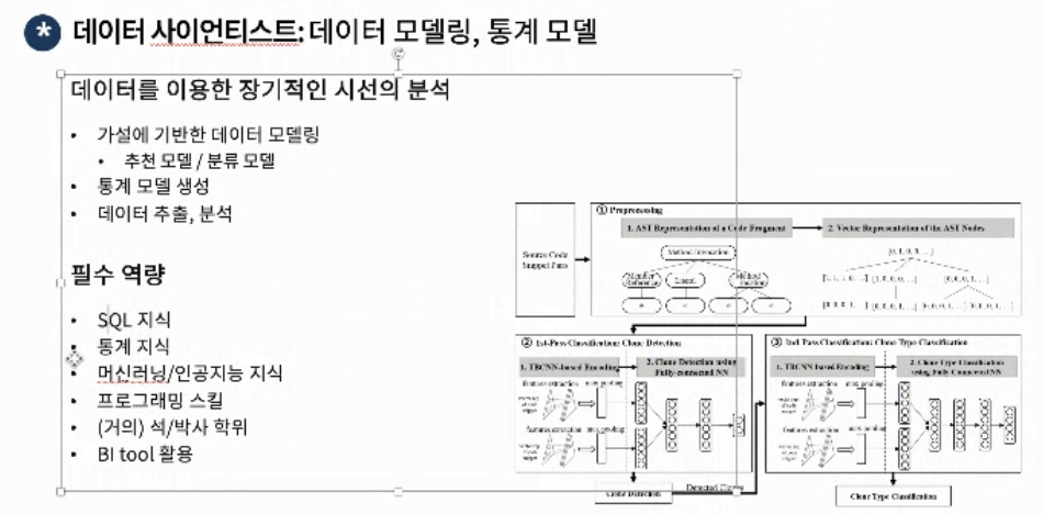 내가 해온 경험들과 원하는 직무를 데이터 직무 관점에서 봤을 때는 데이터 리서쳐에 제일 가깝다고 말씀해주셨다.