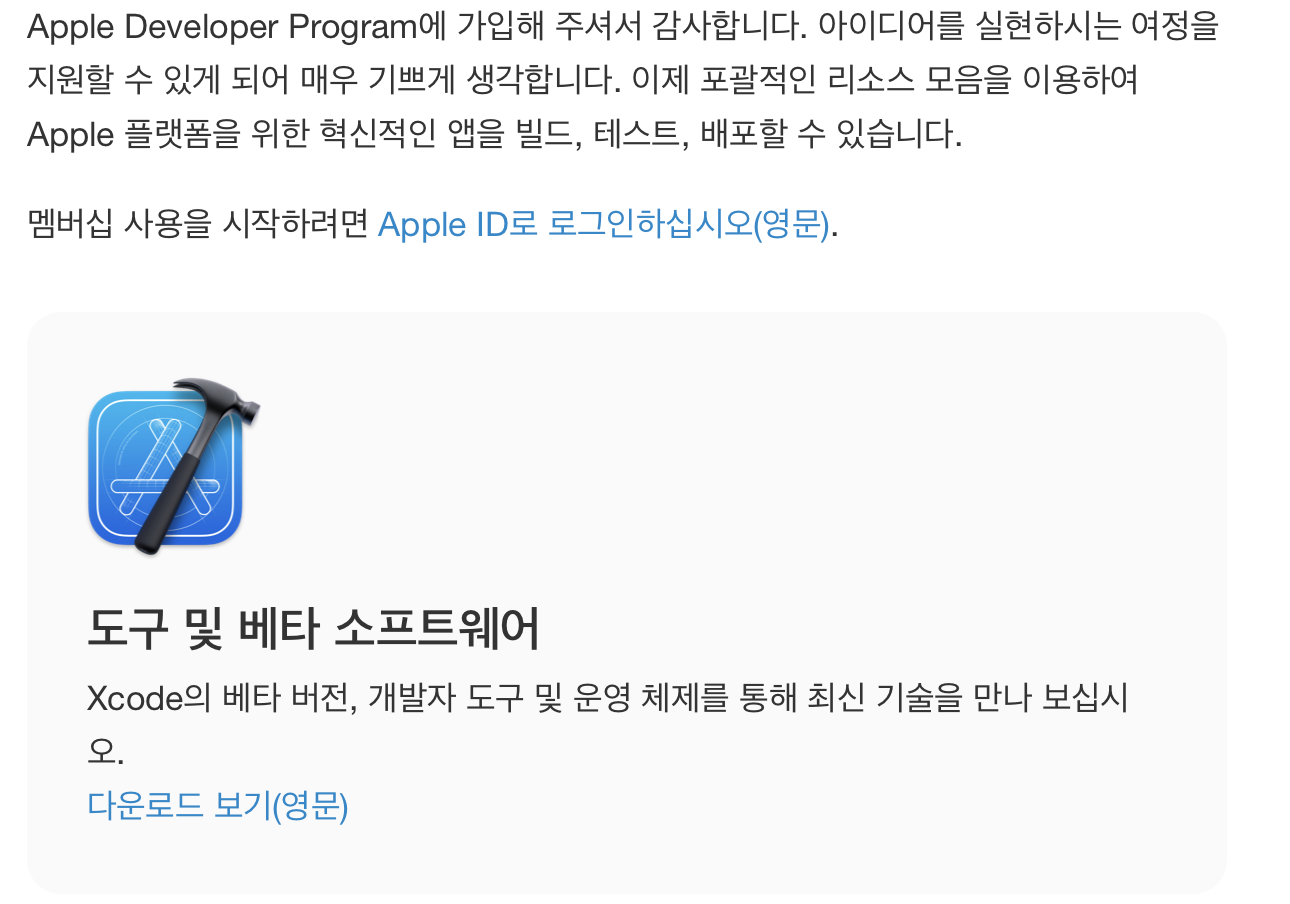수요일에는 월요일에 구매했었던 애플 개발자 계정이 승인이 나서 환경구축과.. 디벨로퍼 앱을 다운받았다. 관련 기술에 관해 애플 개발자 컨퍼런스에 신청해놨다. 승인이 나면 내 이름과 함께.. 메일이 날아오게 된다.