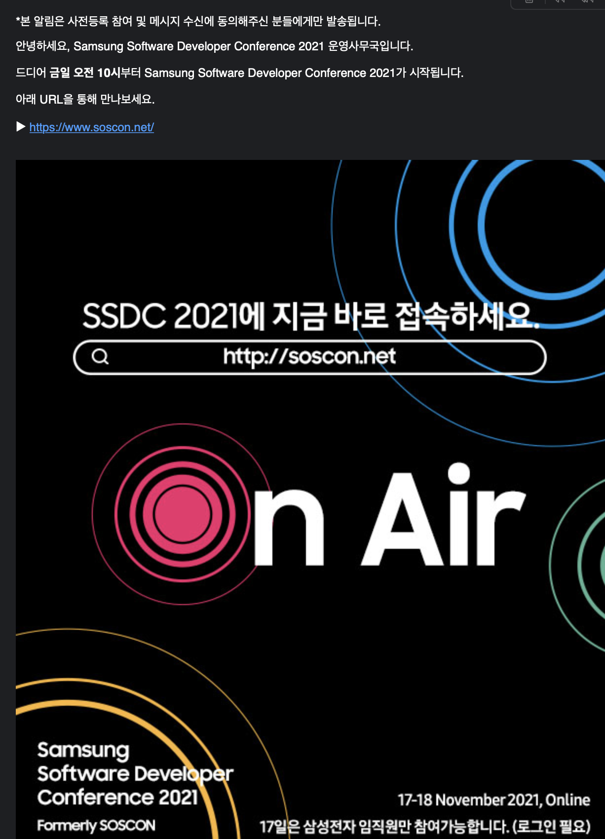그리고 목요일, 삼성에서 SW 개발자 컨퍼런스가 열려서 사전신청을 한 나는 참여를 했었다.