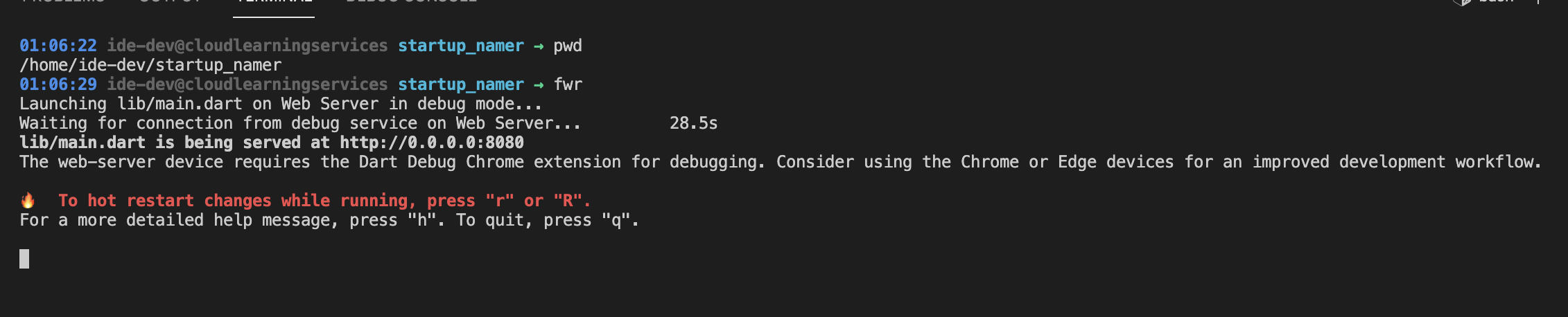 startup_namer directory 로 가서 ```fwr``` 라고 터미널에 입력한다.