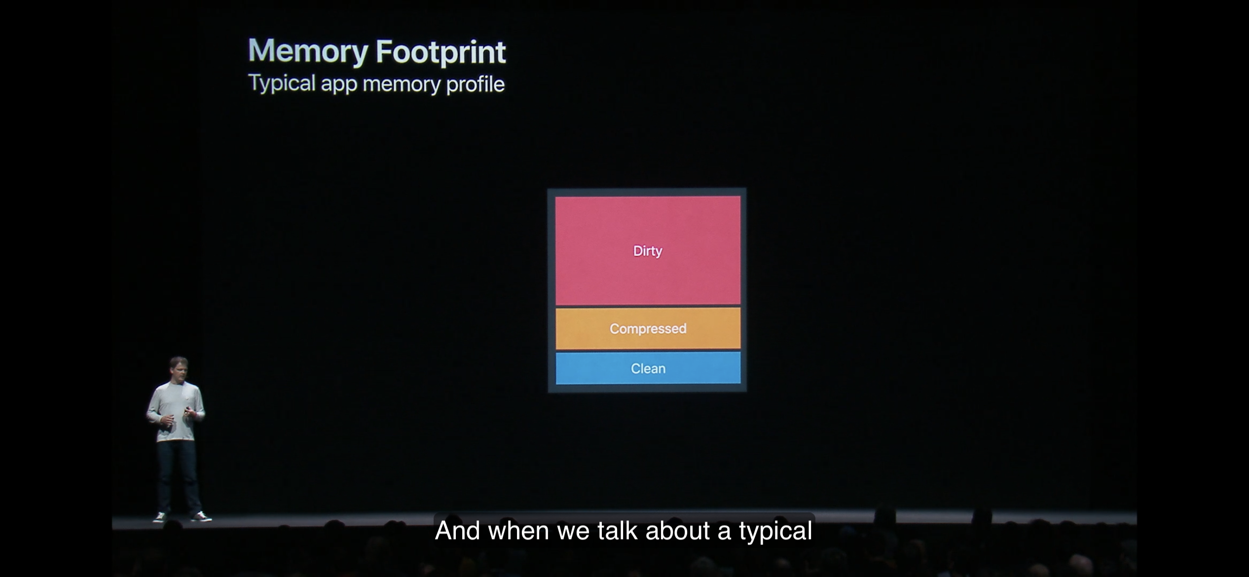 메모리의 footprint를 추적할 때는 Dirty, Compressed만 포함된다. 우리가 footprint를 프로파일링하는것은 이제 다른 엔지니어가 설명해주신다.