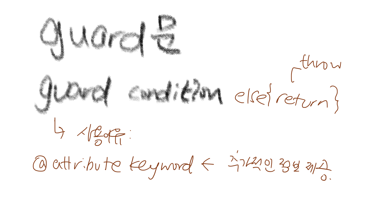 (1) code의 영역이 변경되지 않음 (범위(Scope)에 대한 원칙에서 벗어나서 자유로운 코드작성) (2) guard 문에서 선언된 변수를 아래문장에서 사용 가능 (동일한 범위(Scope) 취급)