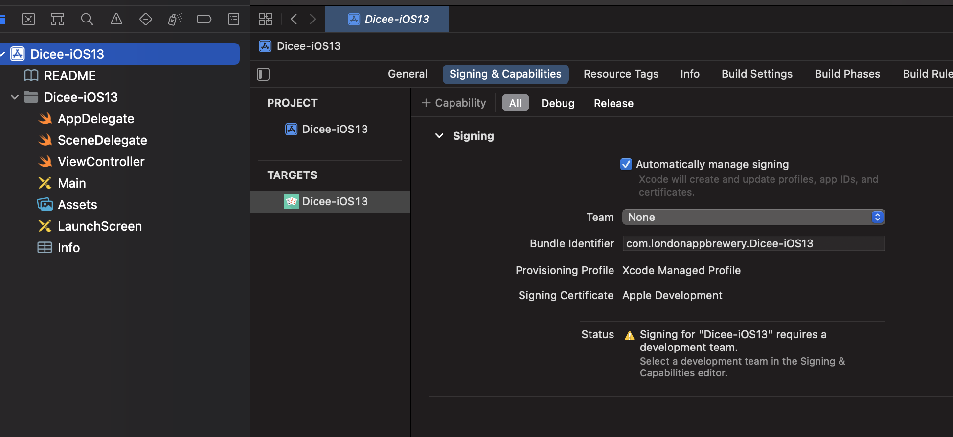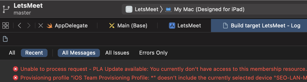 해결: Signing & Capabilities에 들어가서 Team도 선정해주고, Bundle Identifier도 설정을 해주어서 기기를 등록해준다.
