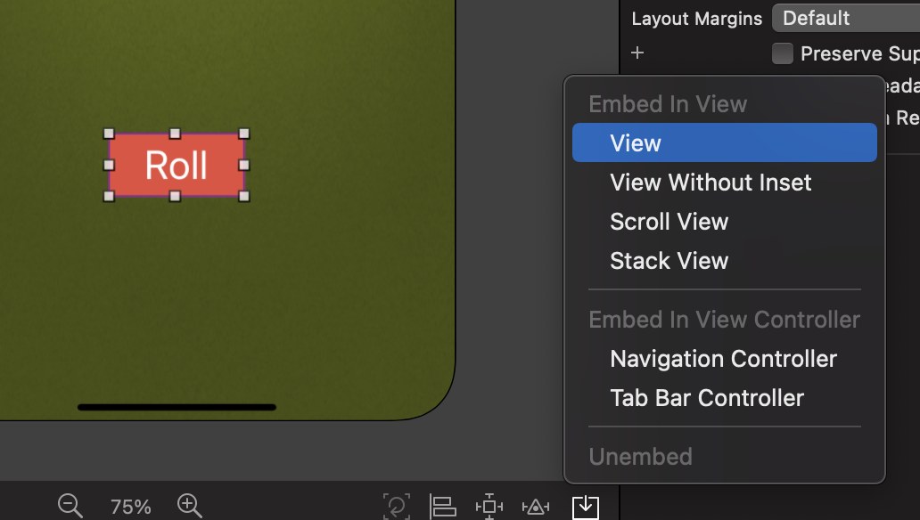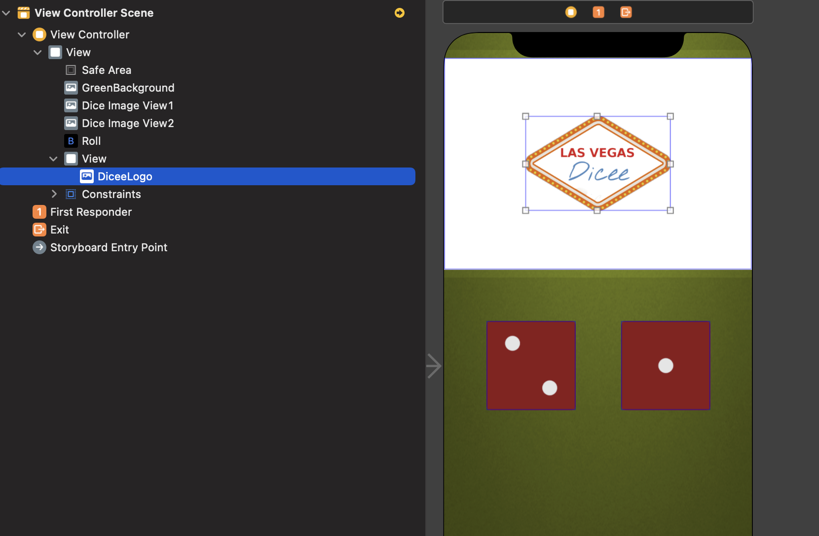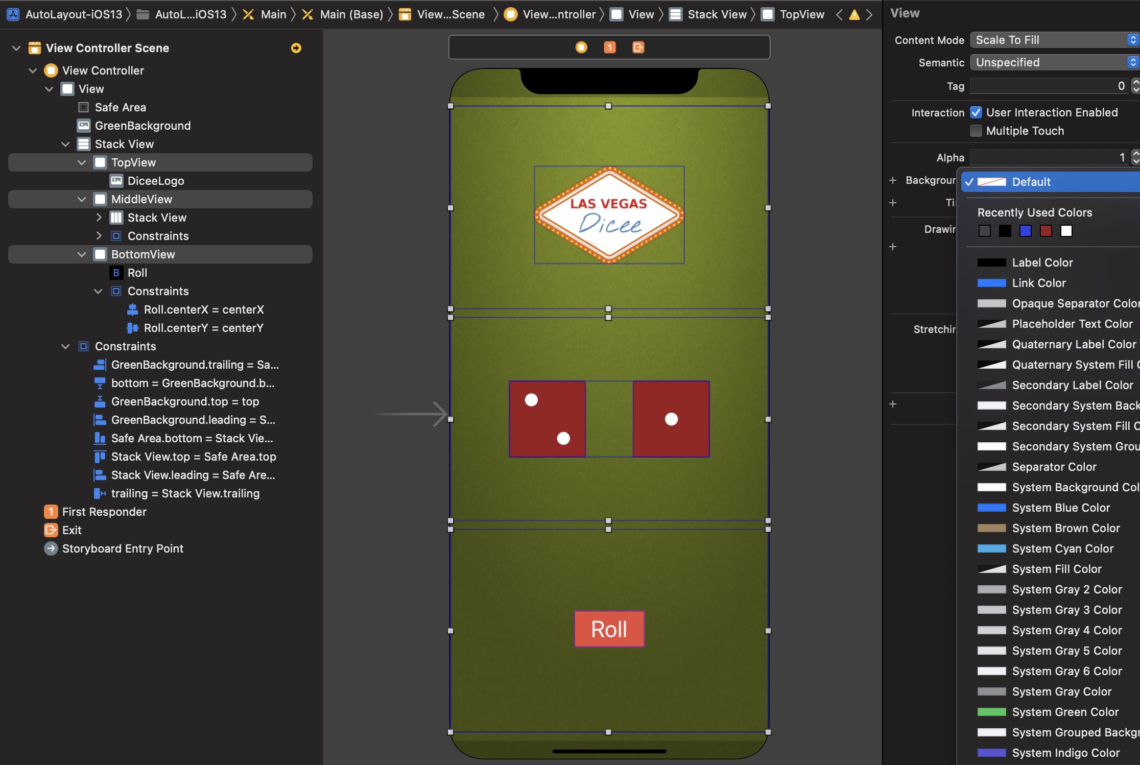 그리고 주사위 객체들도 스택뷰로 잘 해주고, 컨테이너 뷰 백그라운드 컬러를 none으로 해준다.