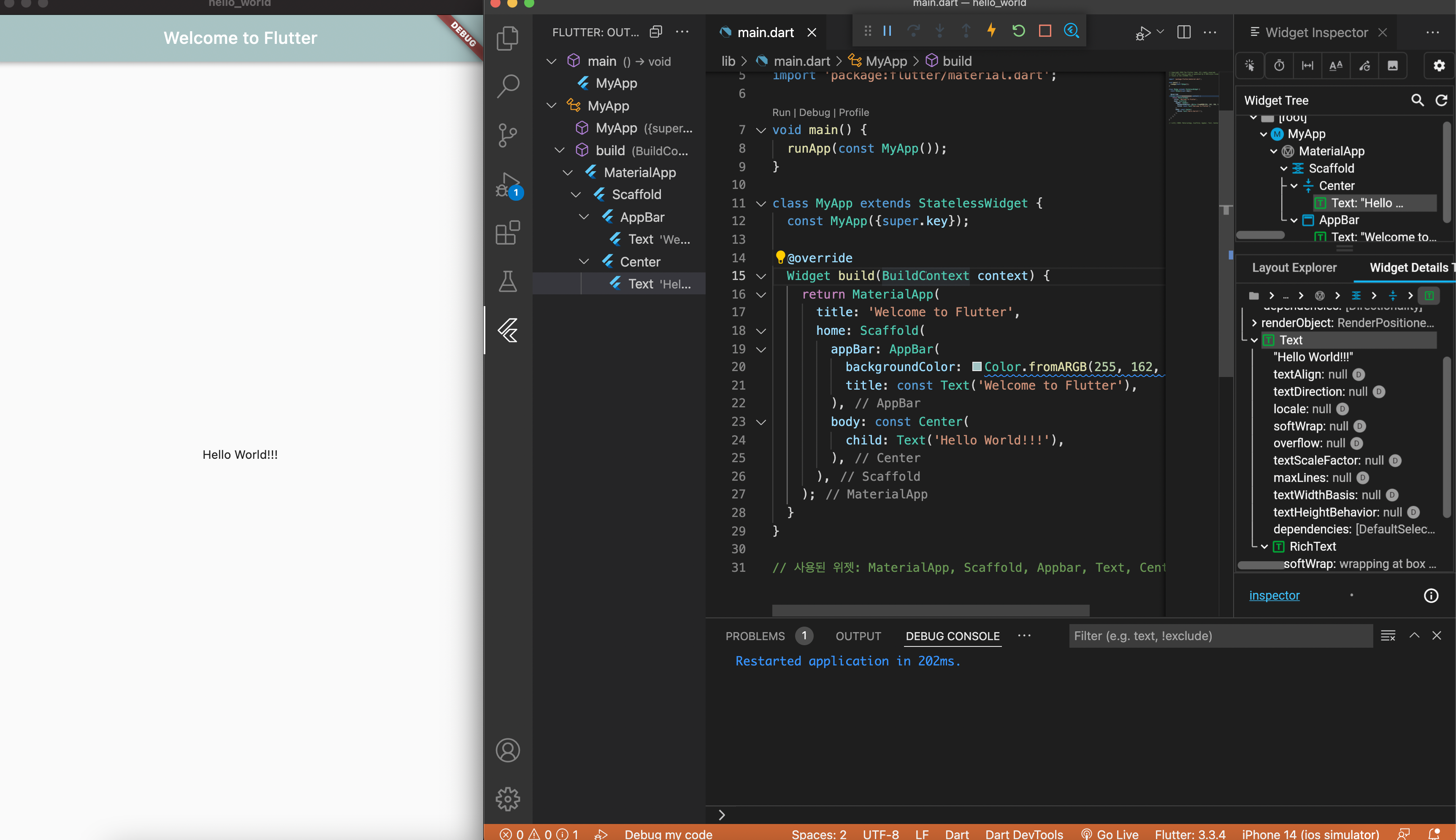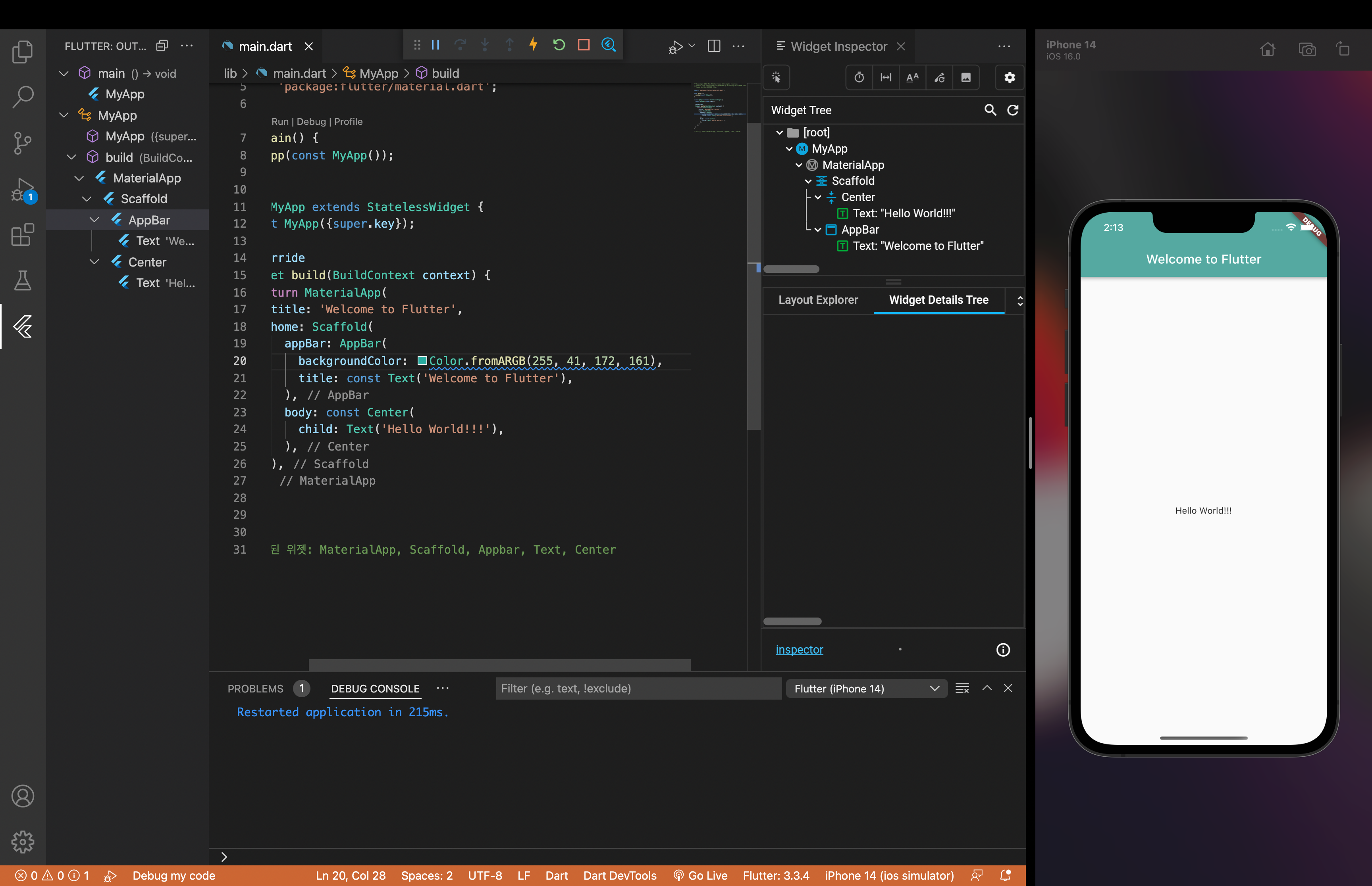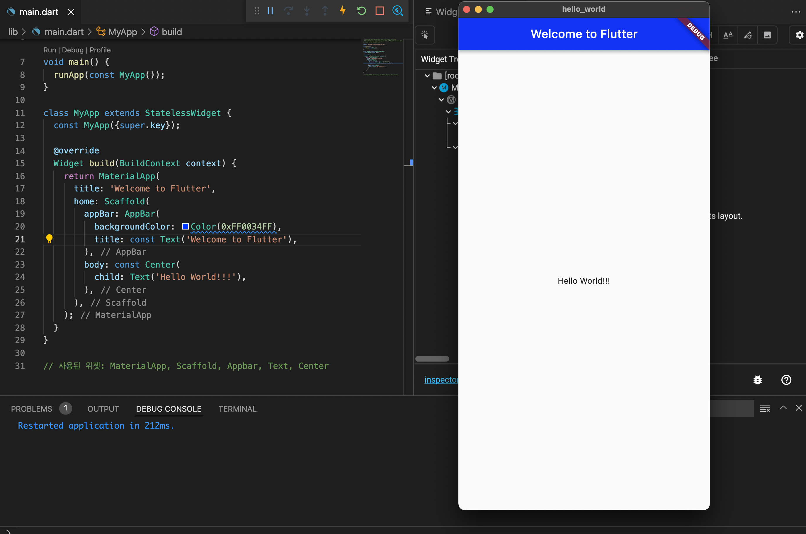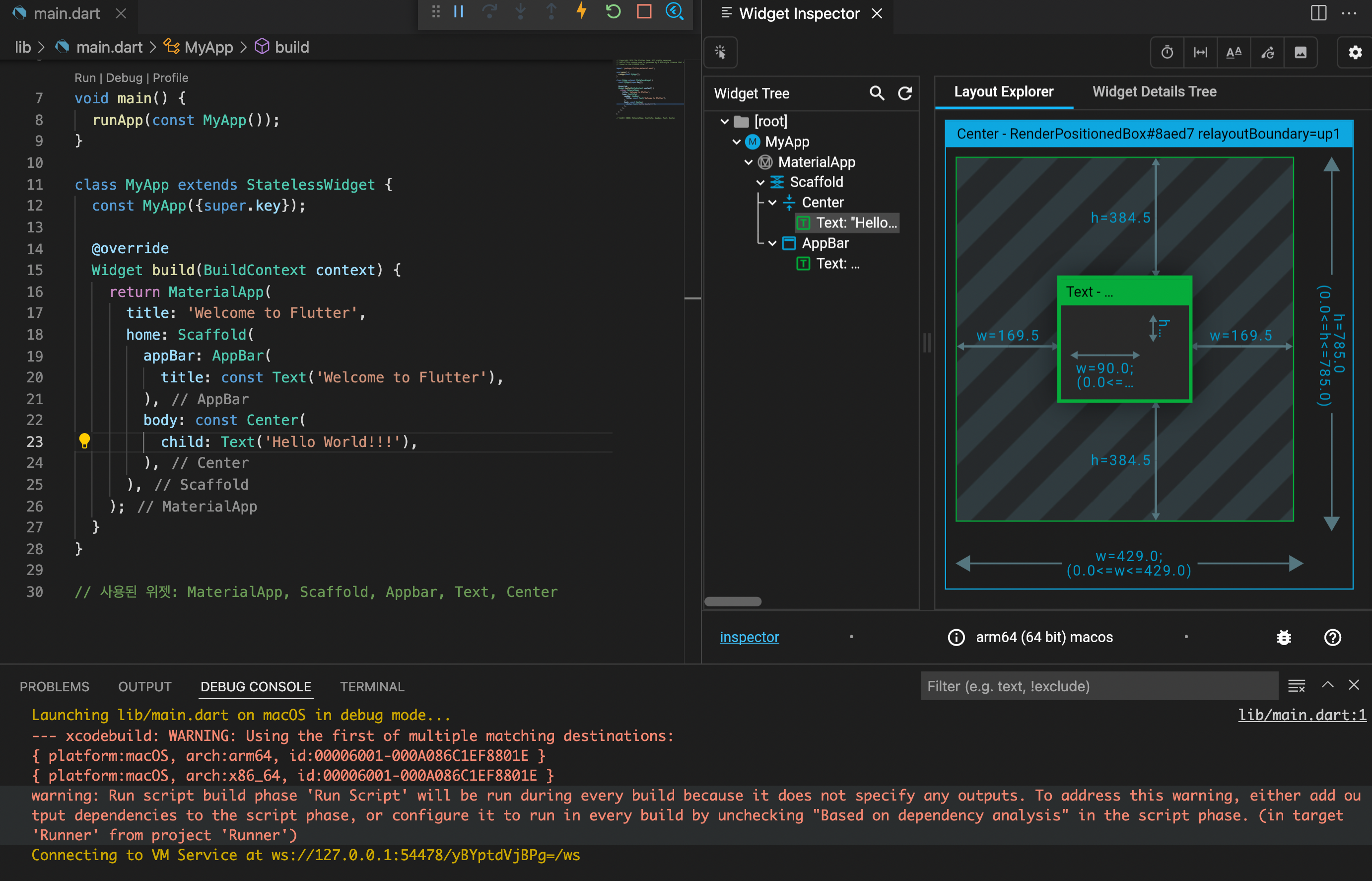 // 사용된 위젯: MaterialApp, Scaffold, Appbar, Text, Center
