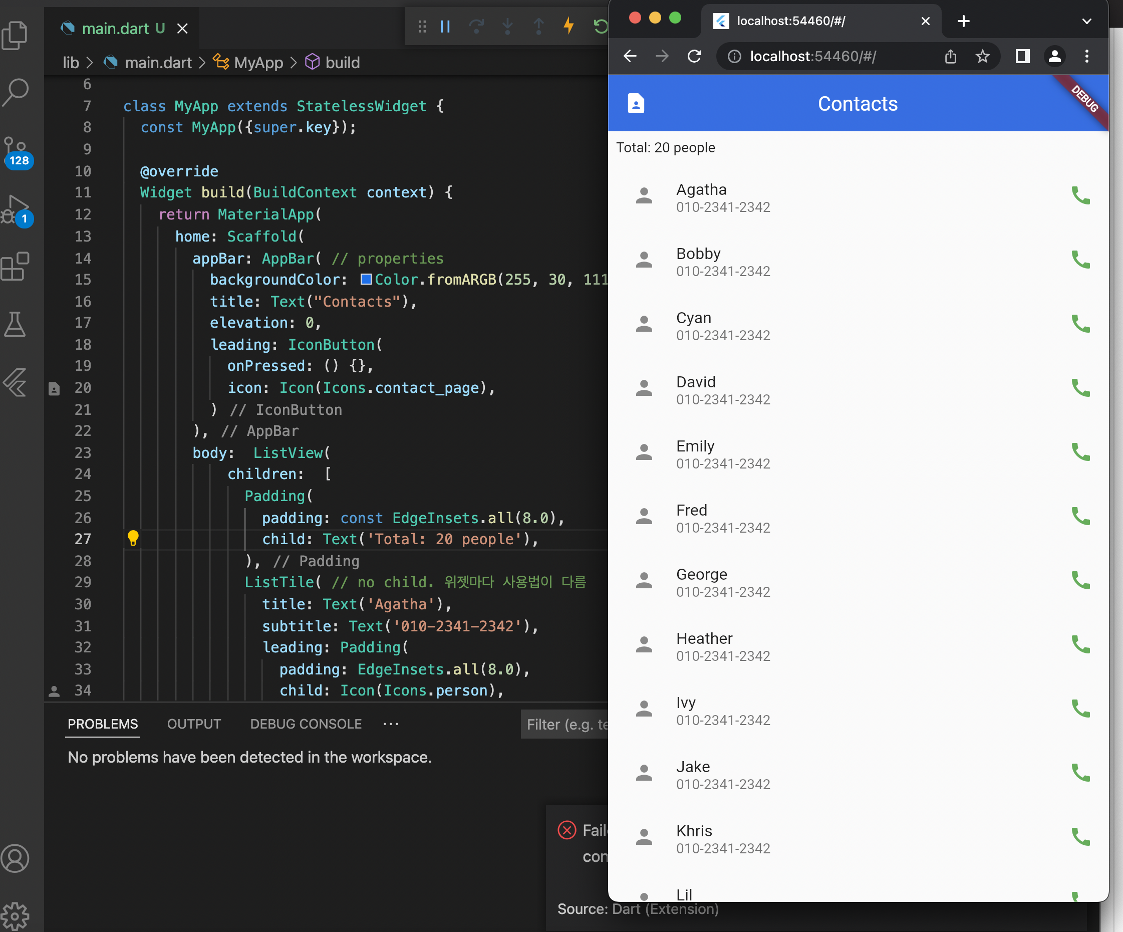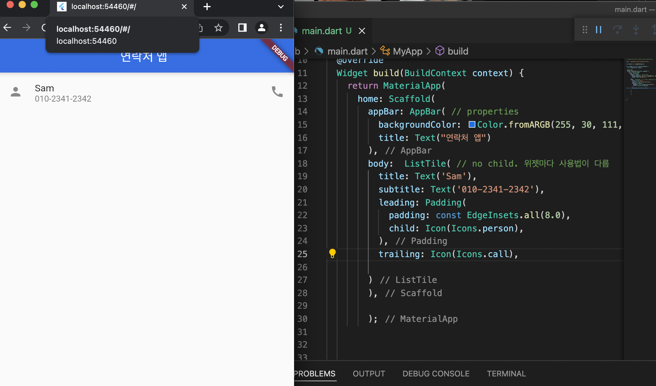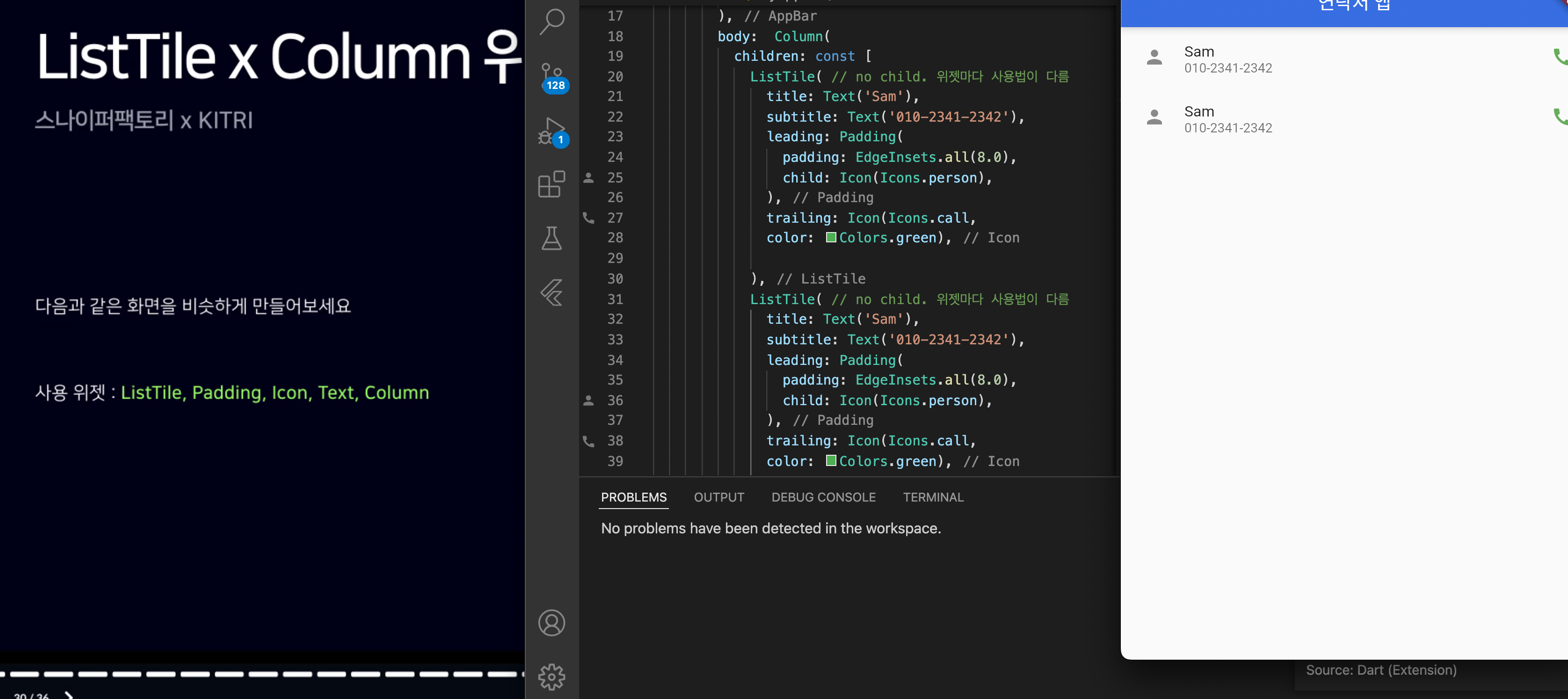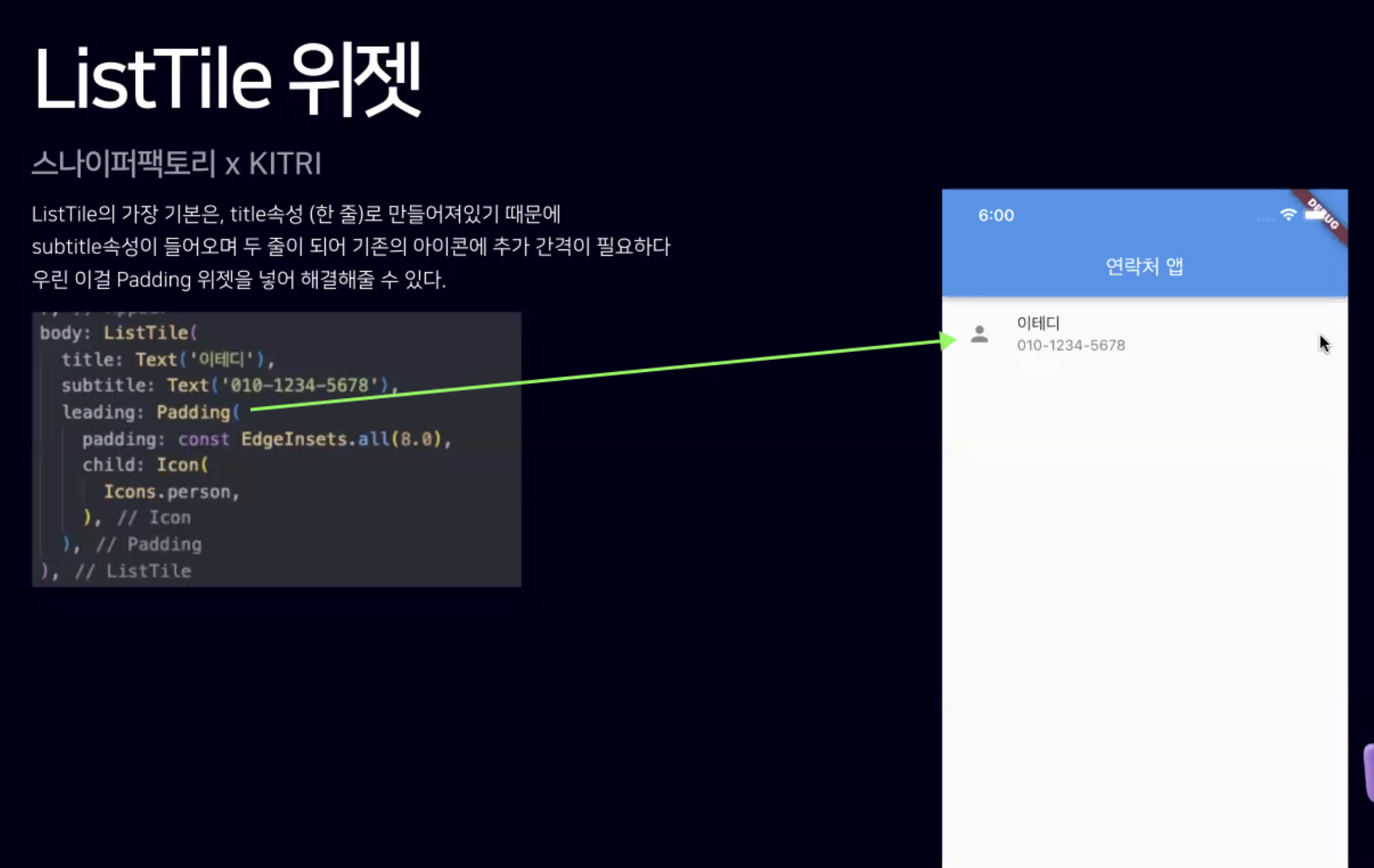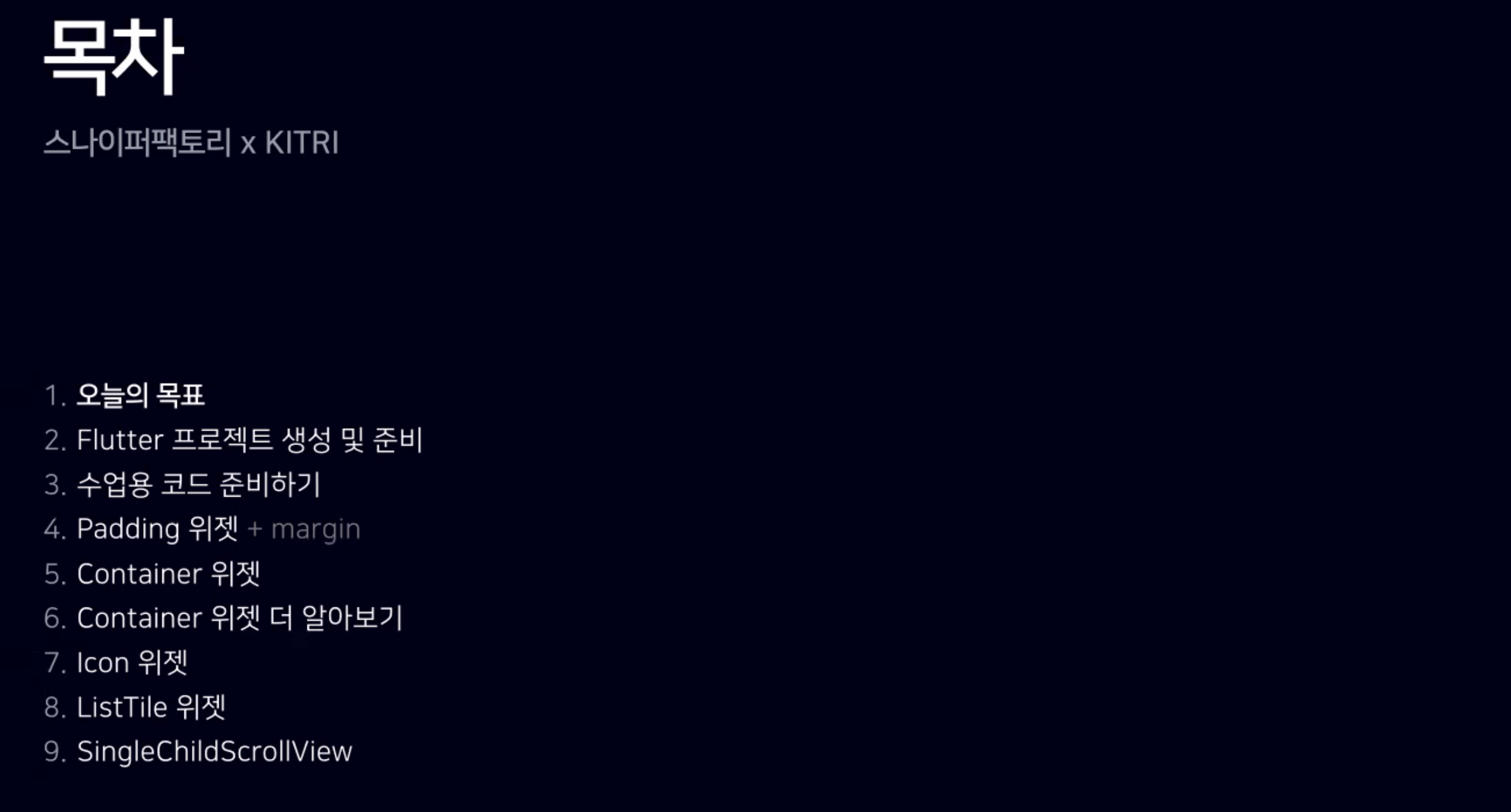 Flutter - 3회차 (widget: Padding, Container, Icon, ListTile, SingleChildScrollView) 본문