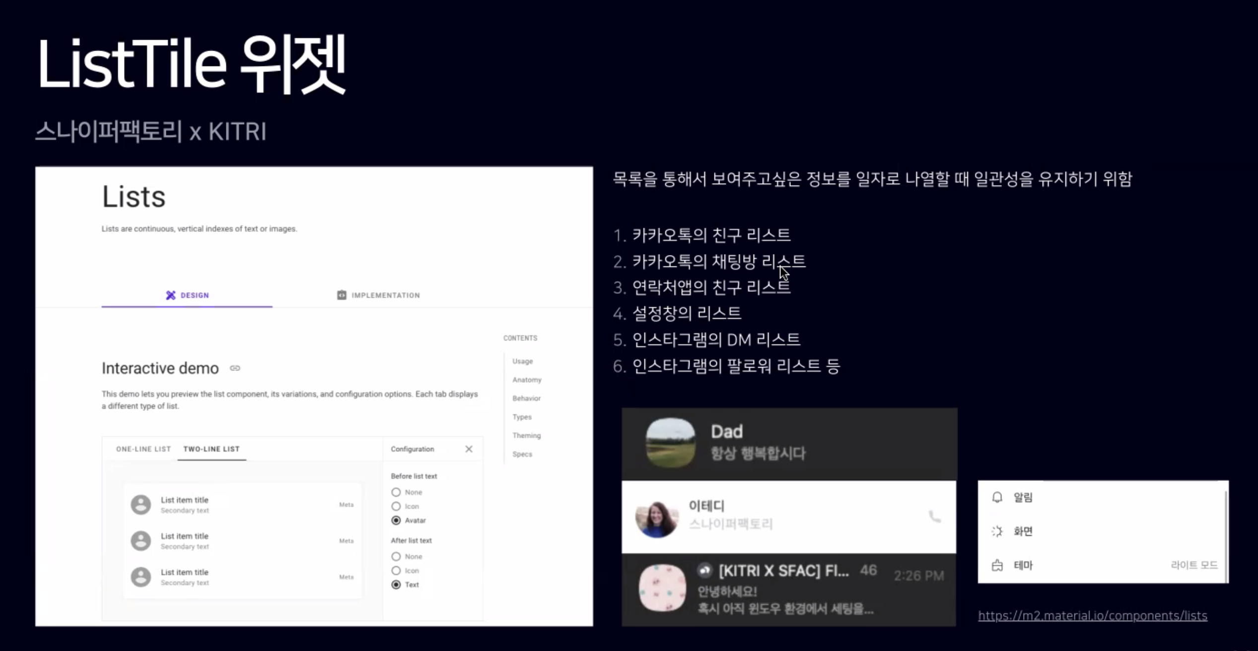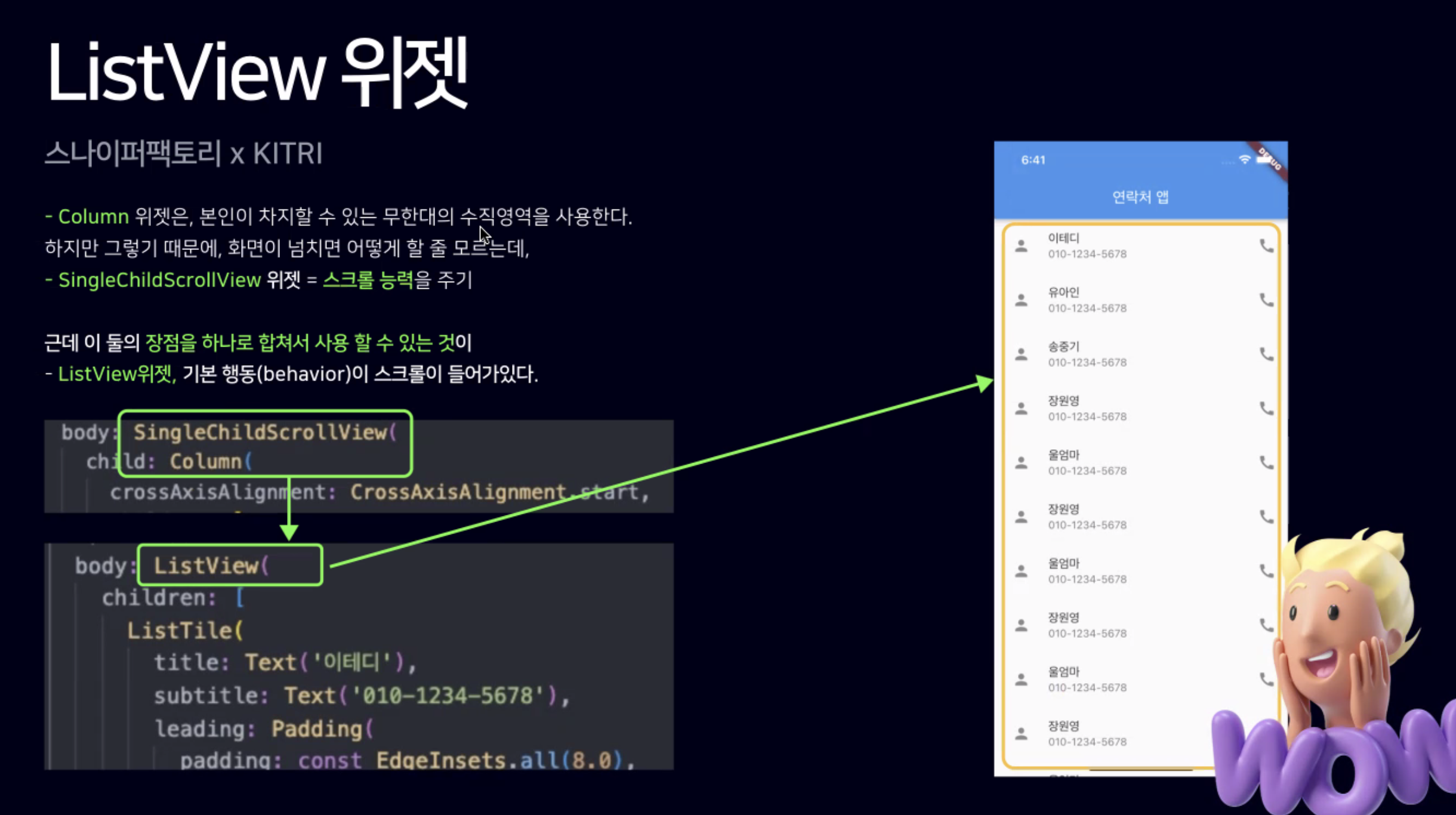 ListView : SingleChildScrollView + Column / Row Widget과 함께 쓰임