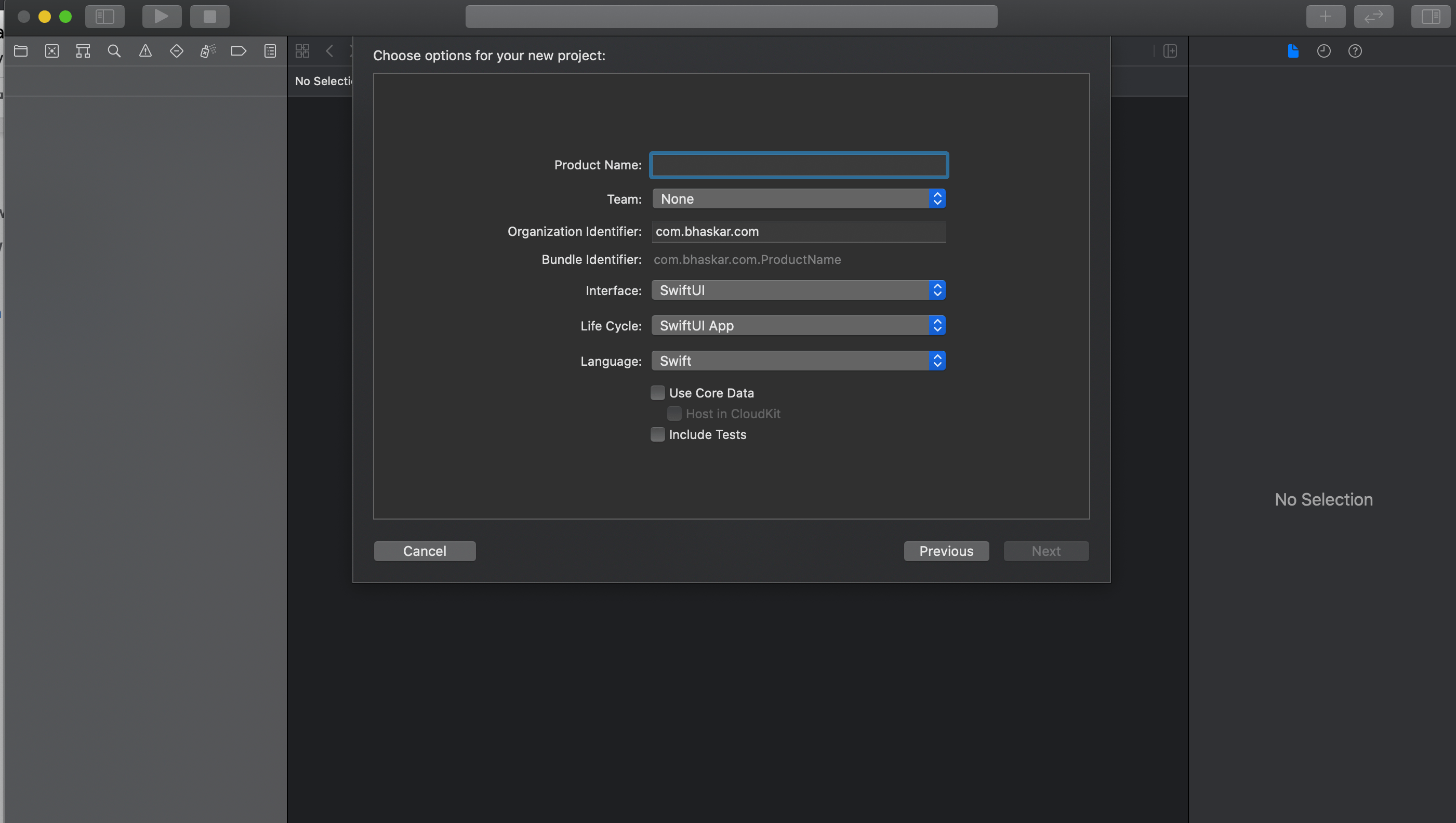 Organization Identifier: A reverse DNS string that uniquely identifies your organization. For example, if the name of your organization is XYZ, then the reverse DNS notation would become com.xyz. However, since you’re building this app for yourself, you can use com.<your_name>. You may need to revisit this step before uploading your app to the App Store.