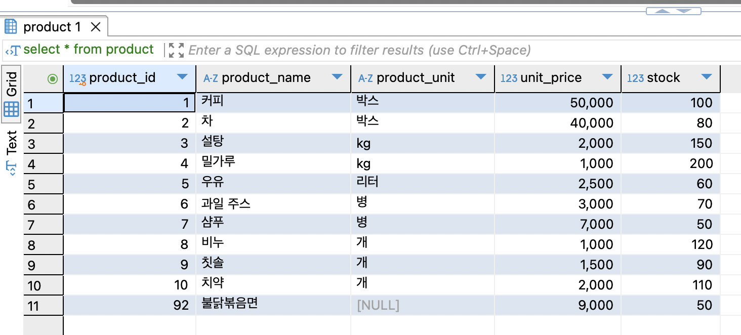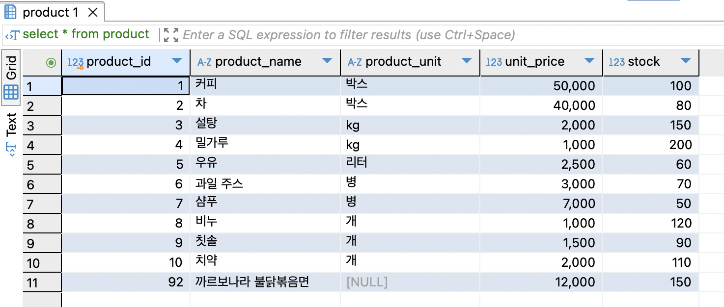 values(92, '까르보나라 불닭볶음면', 12000, 150)