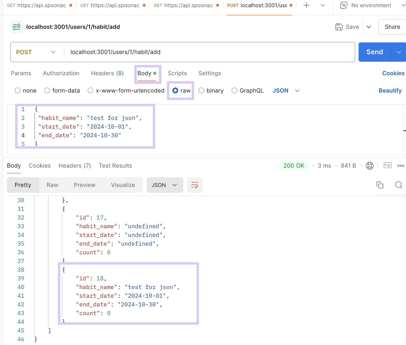 그리고 마지막은, 또 res.json({ habits: rows }) ^^
