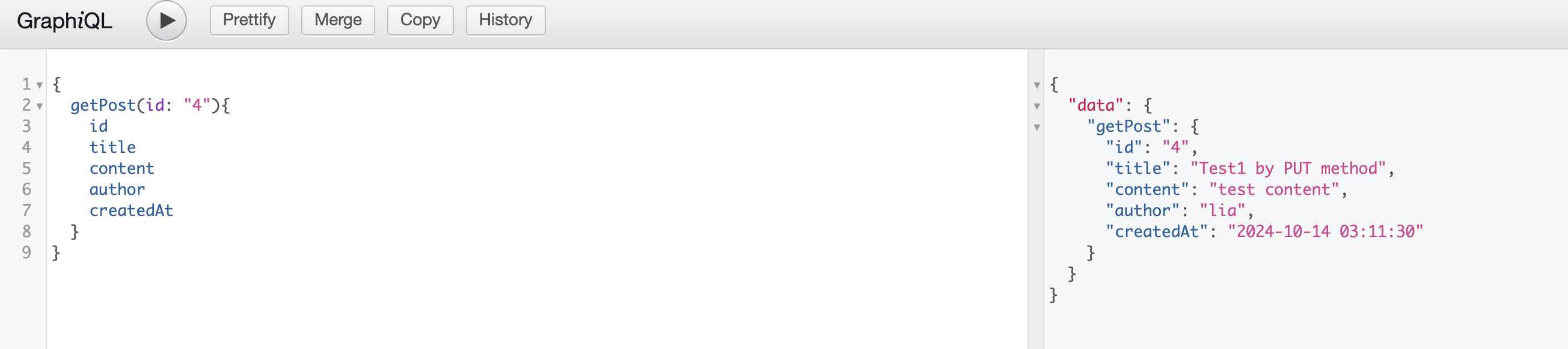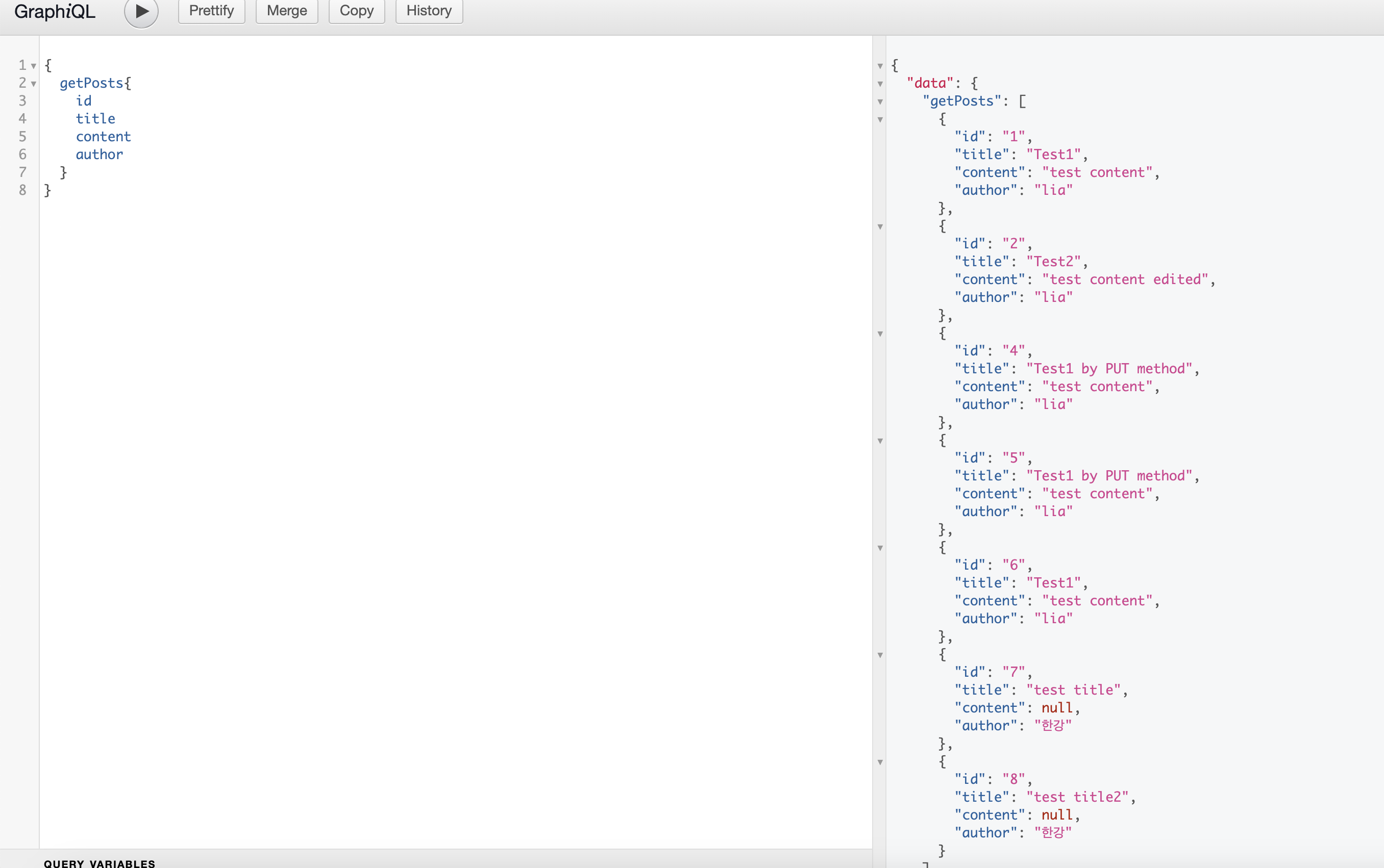 여기에서 app.js에서 스키마를 설계한 대로, 데이터를 요청하면 원하는 내가 설계한 데이터를 받아볼 수 있다!