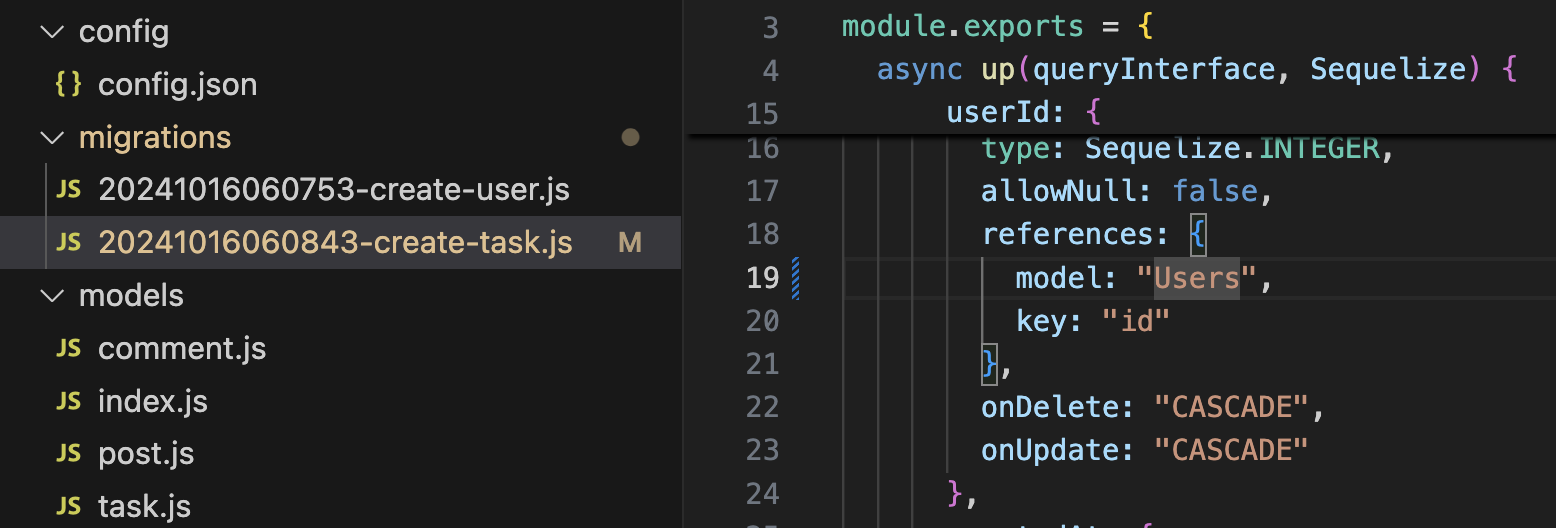 migrations > 20241016060843-create-task.js에 보면, model: "Users"여야 하는데 에 "User"로 선언을 했었다.