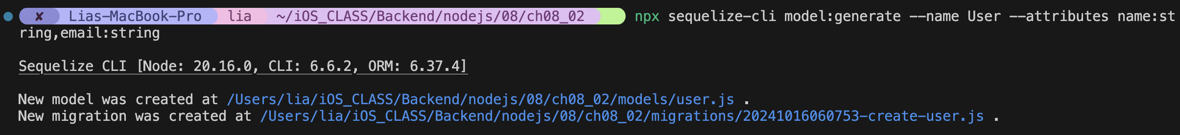 달모드 2024. 10. 16. 16:31시퀄라이저 CLI로 테이블을 생성해주기 위해, 터미널에 아래 명령을 입력한다.