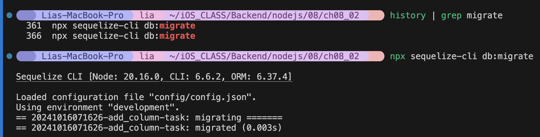 | [Node.js] sequelize-CLI 기존 테이블 필드 추가, 외래키 association 적용 (1) | 2024.10.16 |