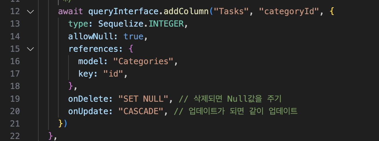 Task.belongsTo(models.Category, {foreignKey:"categoryId", onDelete:"CASCADE"})