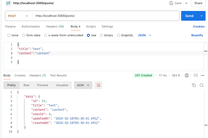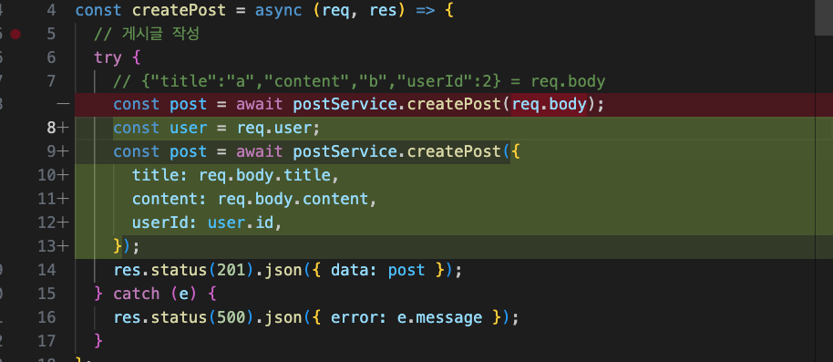postController.js 에 가서 createPost()에 아래로 업데이트
