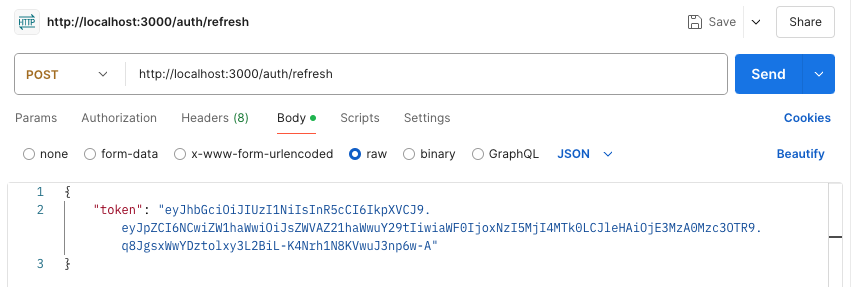 POST/ http://localhost:3000/auth/refresh 주소로 요청을 해본다.