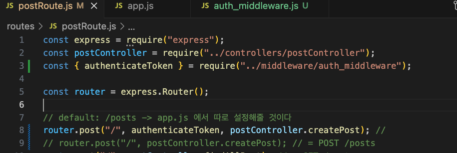 그리고 postRoute.js에 가서 라우터를 추가해준다.