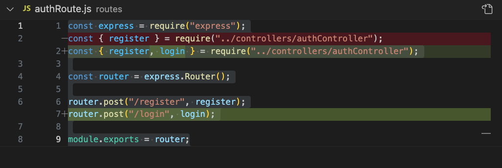 그리고 다시 authRoute.js 로 가서, 새로 구현한 login 모듈 추가를 해준다.
