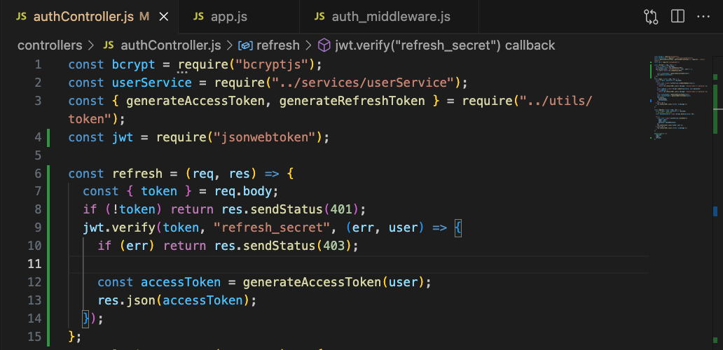 authController.js 가서 아래와 같이 refresh 콜백함수를 만들어준다. 이렇게 되면