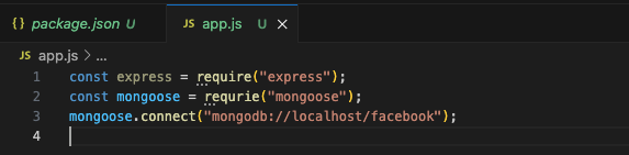 app.js 파일을 생성 후, mongoose 사용할 준비를 해준다.