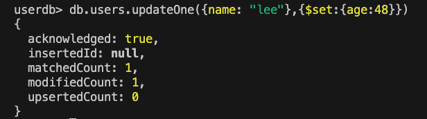 db.users.updateOne({name: "lee"},{$set:{age:48}})