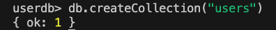 그러면 아래와 같이 { ok: 1 } 이 나온다.