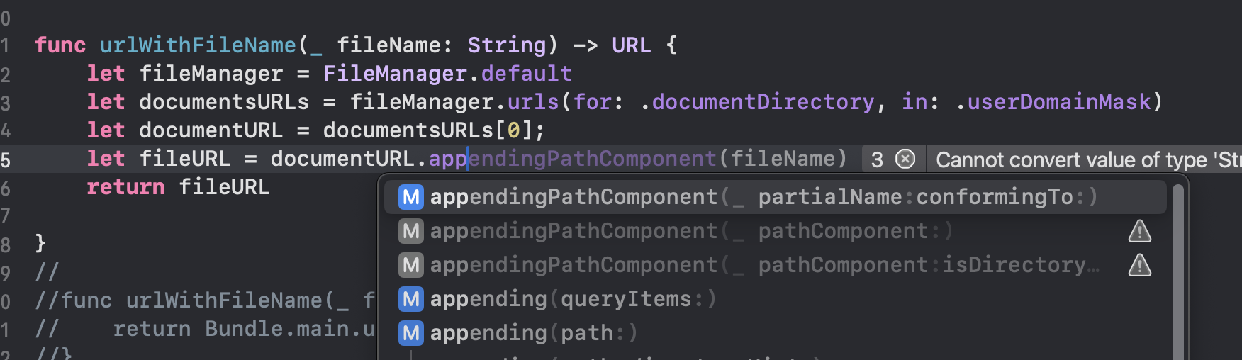 새로운 Utils.swift 파일을 생성하고, 여기에 파일명을 넘겨주면 해당 파일이 존재하는 도큐먼트 URL을 반환해주는 함수를 구현해줄것이다.