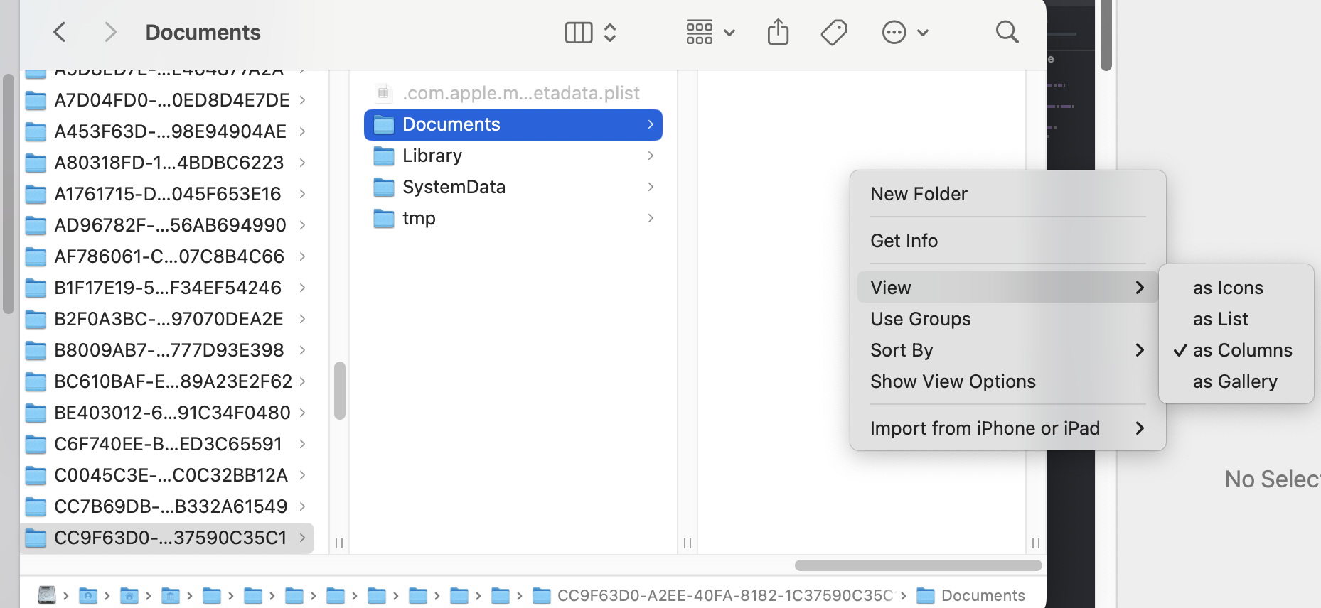 도큐먼트 폴더는 데이터 컨테이너 폴더 안에 있다.