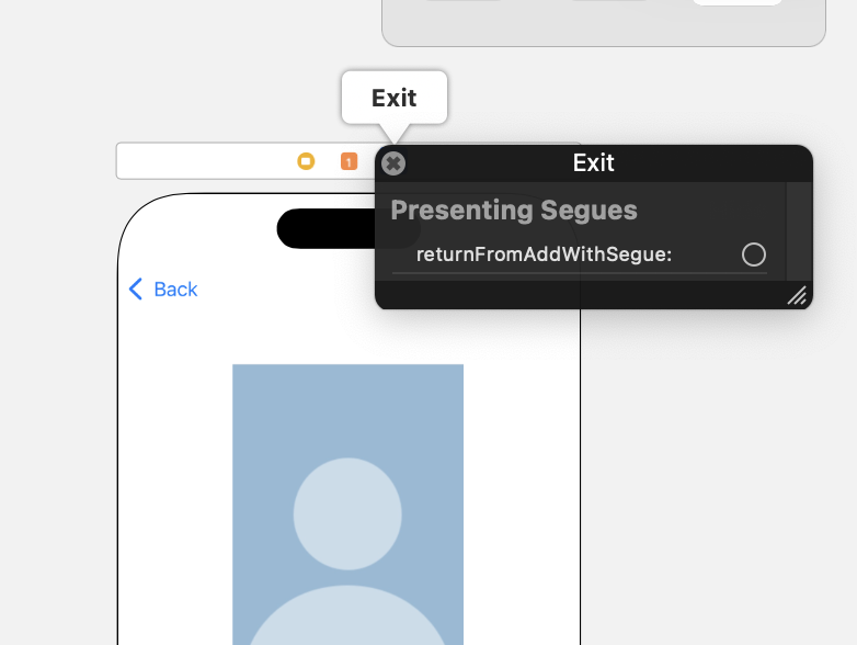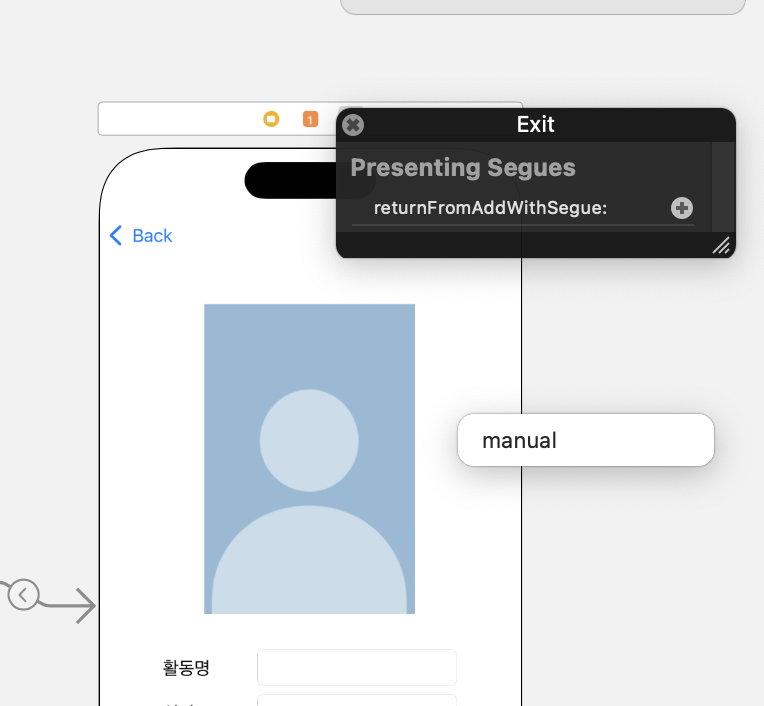 그러면 옆에 Unwind segue "back" to "returnFromAddWithSegue"가 나온다.