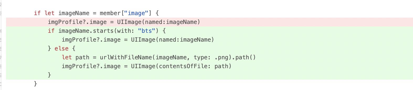 이 코드를 어떻게 고칠거냐면 멤버를 가지고와서, 이미지 이름이 'bts'로 시작하면 named:imageName으로 가져오고, 그게 아니면 타겟 경로를 가지고 와서 해당하는 컨텐츠로 이미지 프로필을 만들어야 한다.