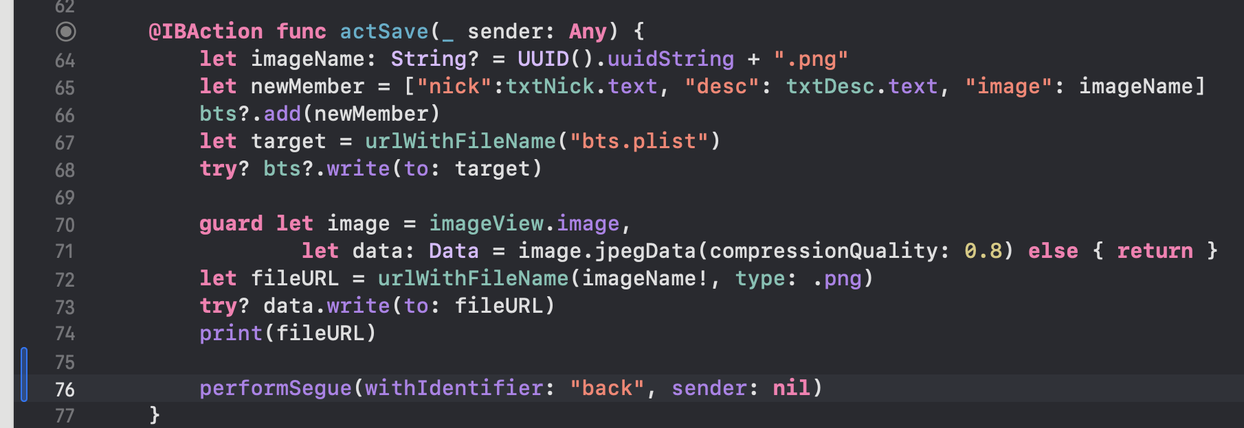 그리고 이 데이터가 넘어가는 파일인 AddImageViewController.swift에서는 이 라인을 지워준다.(안지우면 다르게 동작함)