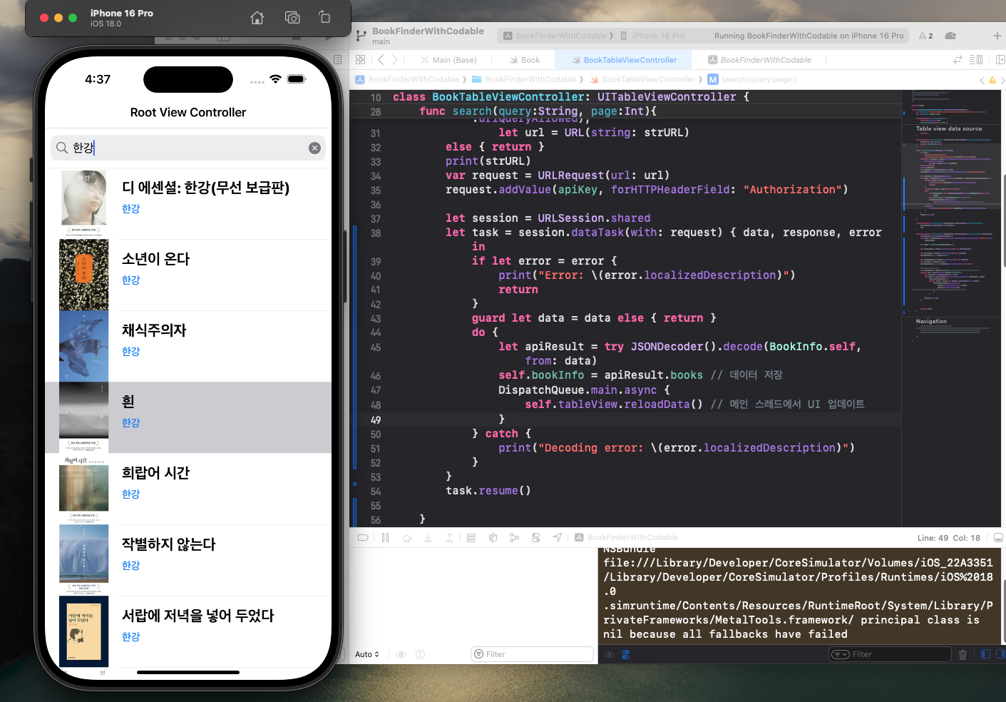 [iOS] Codable - 인코딩 / 디코딩, KakaoAPI를 활용한 BookSearch 앱 만들기 응용 본문