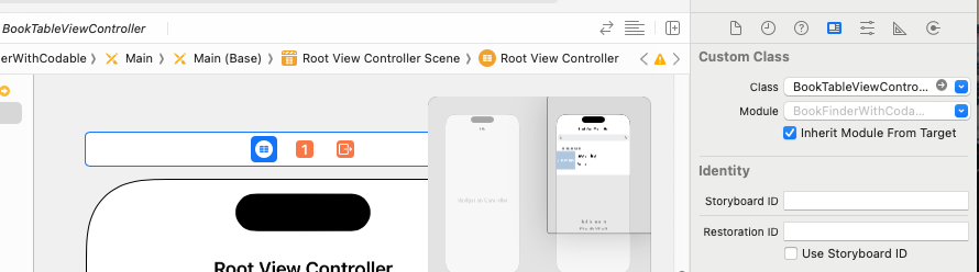 새로운 Cocoa Touch Class 를 생성하여 BookTableViewController로 이름을 짓고, 클래스 연결을 해준다.