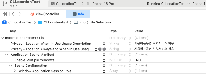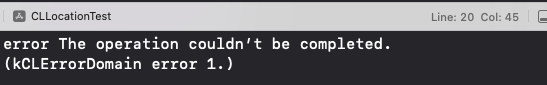 실행 했을 때, 아래와 같이 error The operation couldn’t be completed. (kCLErrorDomain error 1.) 라고 뜨면