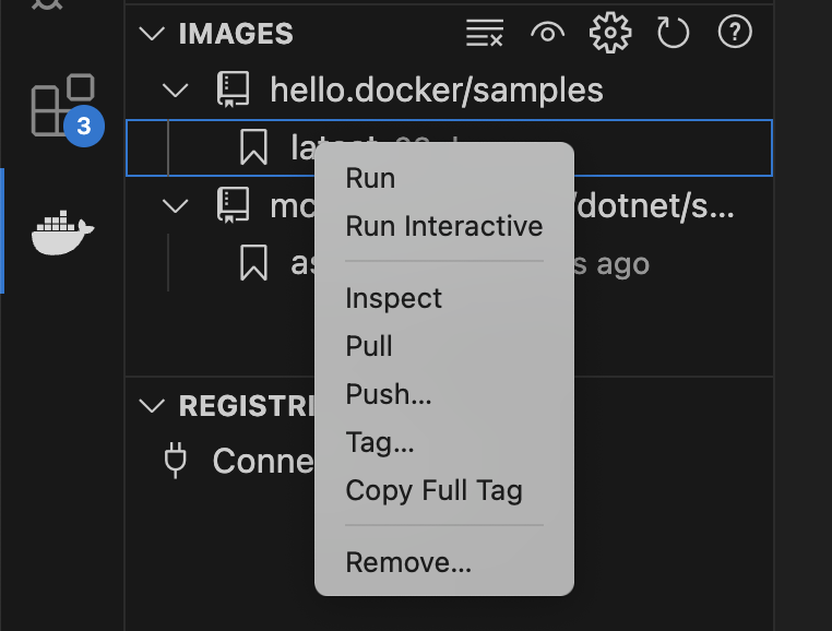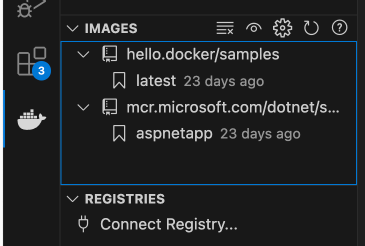 그리고 VS Code 옆 Docker Extension을 보면, 방금 다운받은 이미지들과 태그들을 볼 수 있다.