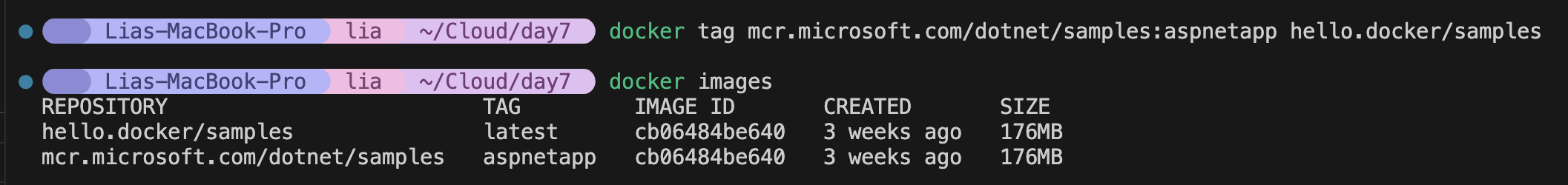 docker tag mcr.microsoft.com/dotnet/samples:aspnetapp hello.docker/samples