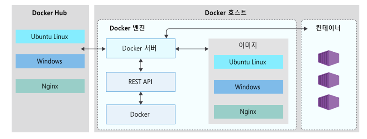 도커: Container Engine(Docker)이라는 SW를 설치해 개별 컨테이너가 생성되어 각 앱을 고립된 환경에서 실행할 수 있다.