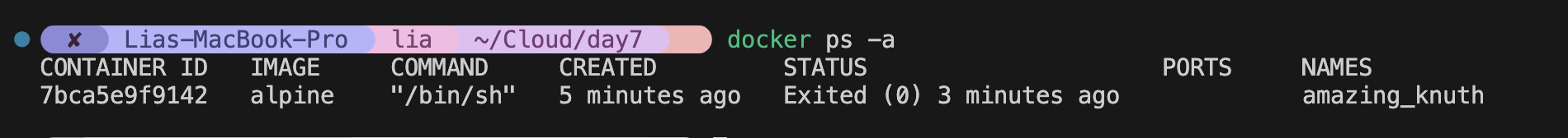 - ps: Process Status의 약어. 현재 실행 중인 컨테이너 목록을 보여주는 명령어