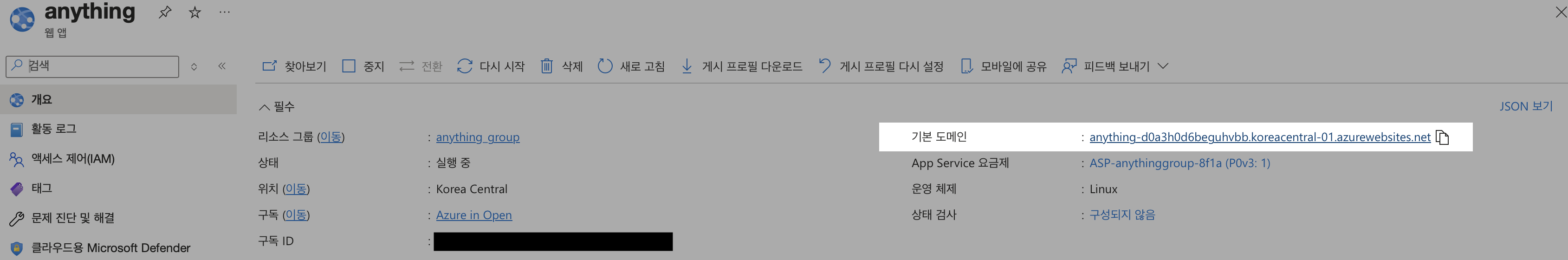 Azure에서 앱 생성하여 docker 이미지 파일 올리기