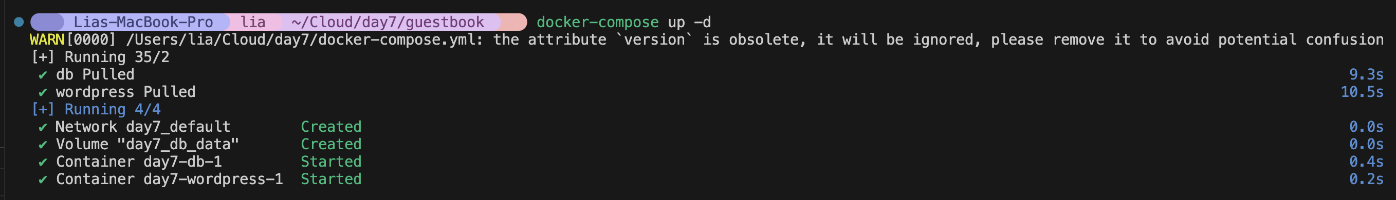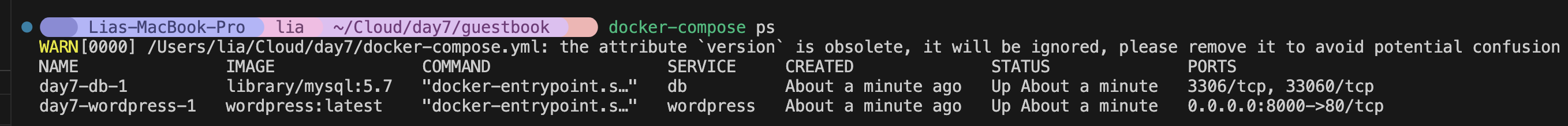 그럼 현재 실행하려는 이미지 파일이 로컬에 없으므로 야믈 파일의 명령어가 docker hub에서 이미지 파일을 가지고 와서 실행하게 되고, 최종적으로 아래와 같이 창이 확인되는 것이다!