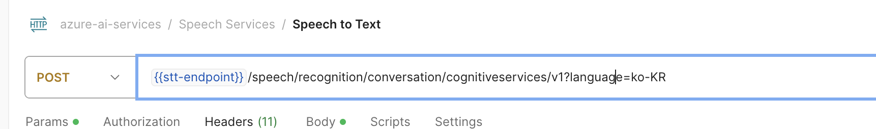 const endpoint = `${process.env.STT_ENDPOINT}/speech/recognition/conversation/cognitiveservices/v1?language=ko-KR`;