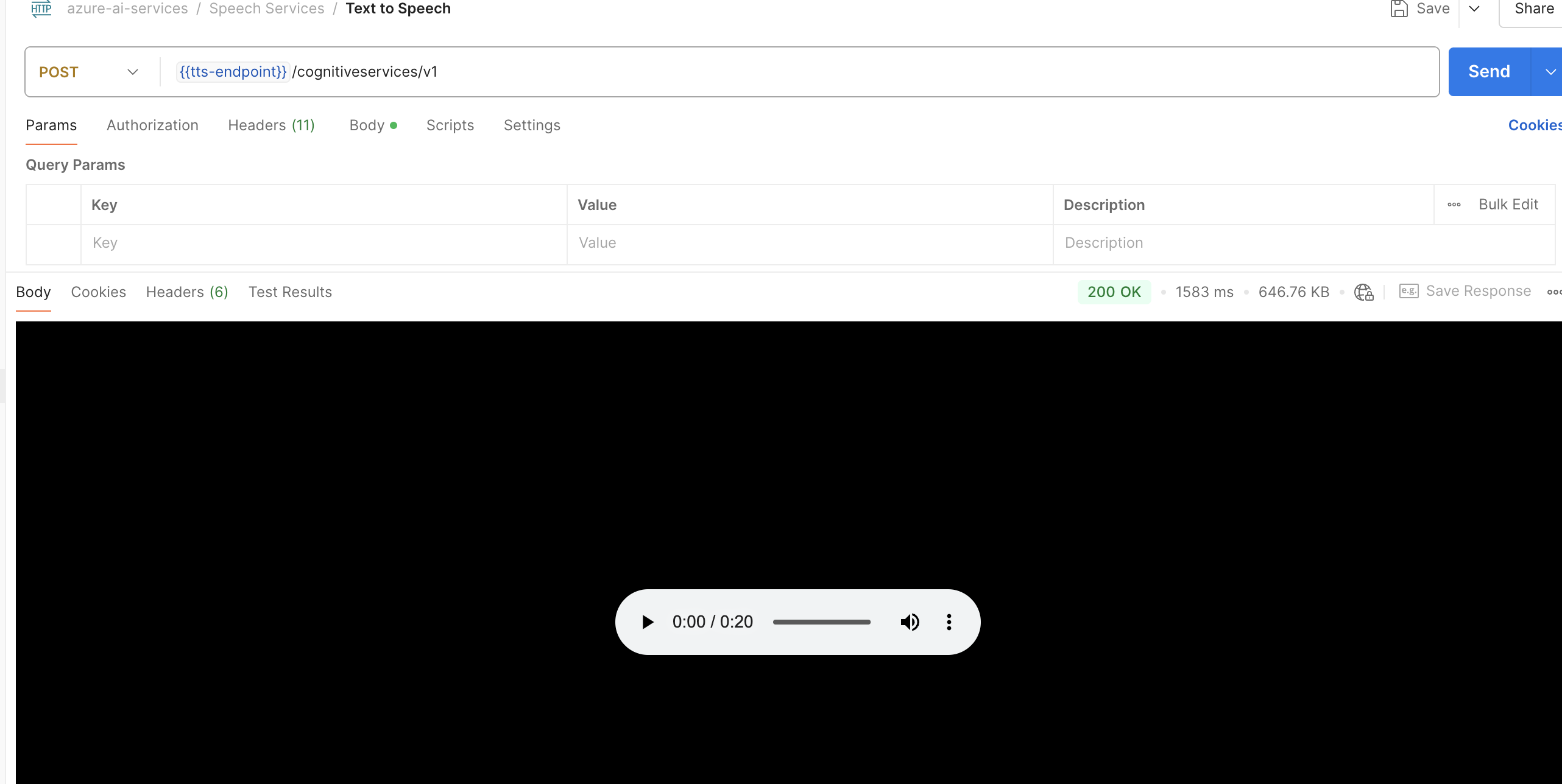POST 요청 시, 아래와 같이 음성을 재생할 수 있는 화면이 나타난다.