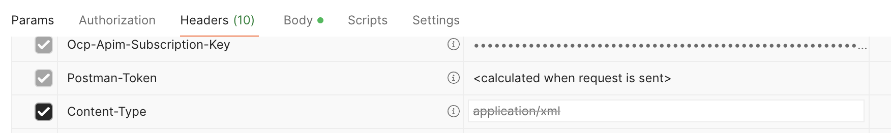 이와 같이 ssml+xml로 Content-Type을 새로 추가해주면 위 캡처처럼 기존 Content-Type은 crossline 처리가 된다.